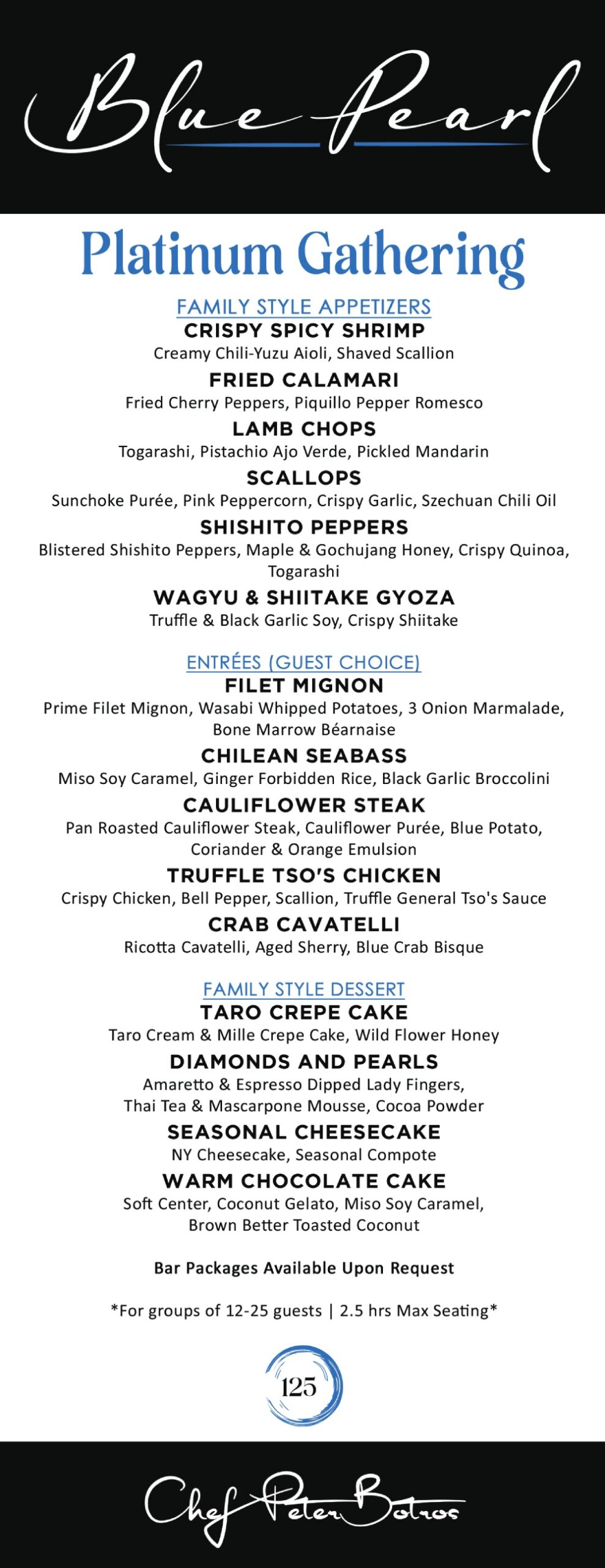 *For groups of 12-25 guests | 2.5 hrs Max Seating*